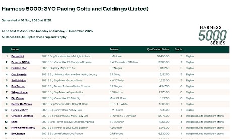 Dreams Of Eric sold but Harness 5000 tilt at Ashburton still on for Nate and Cody