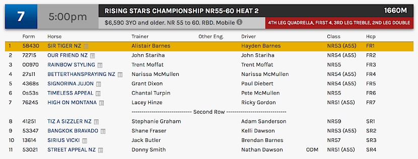 Barnes can see Sir Tiger capitalising on a handy markers trip and qualifying for the A$16,000 Rising Stars Final the following week.