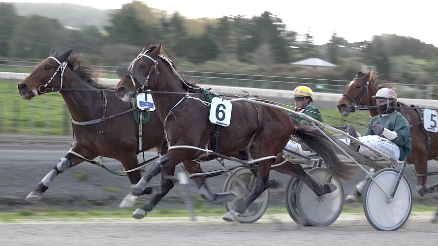 Tommy Lincoln, inner, and Copy That ran the quinella again at Friday’s Pukekohe workouts, sizzling home in 26.6.