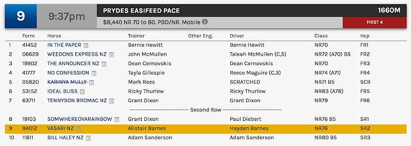 The race features in-form former Kiwis Tennyson Bromac and Bill Haley.
